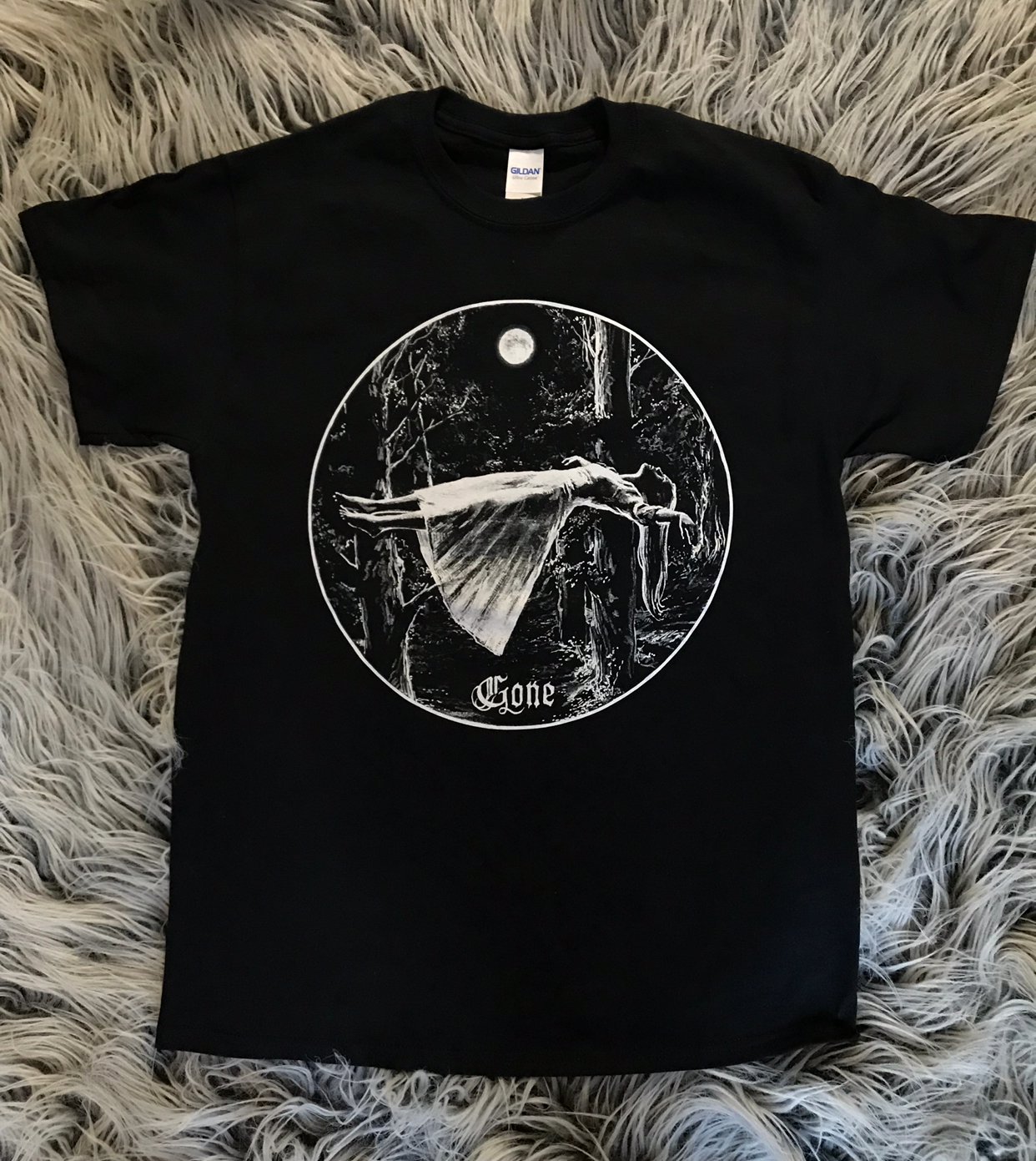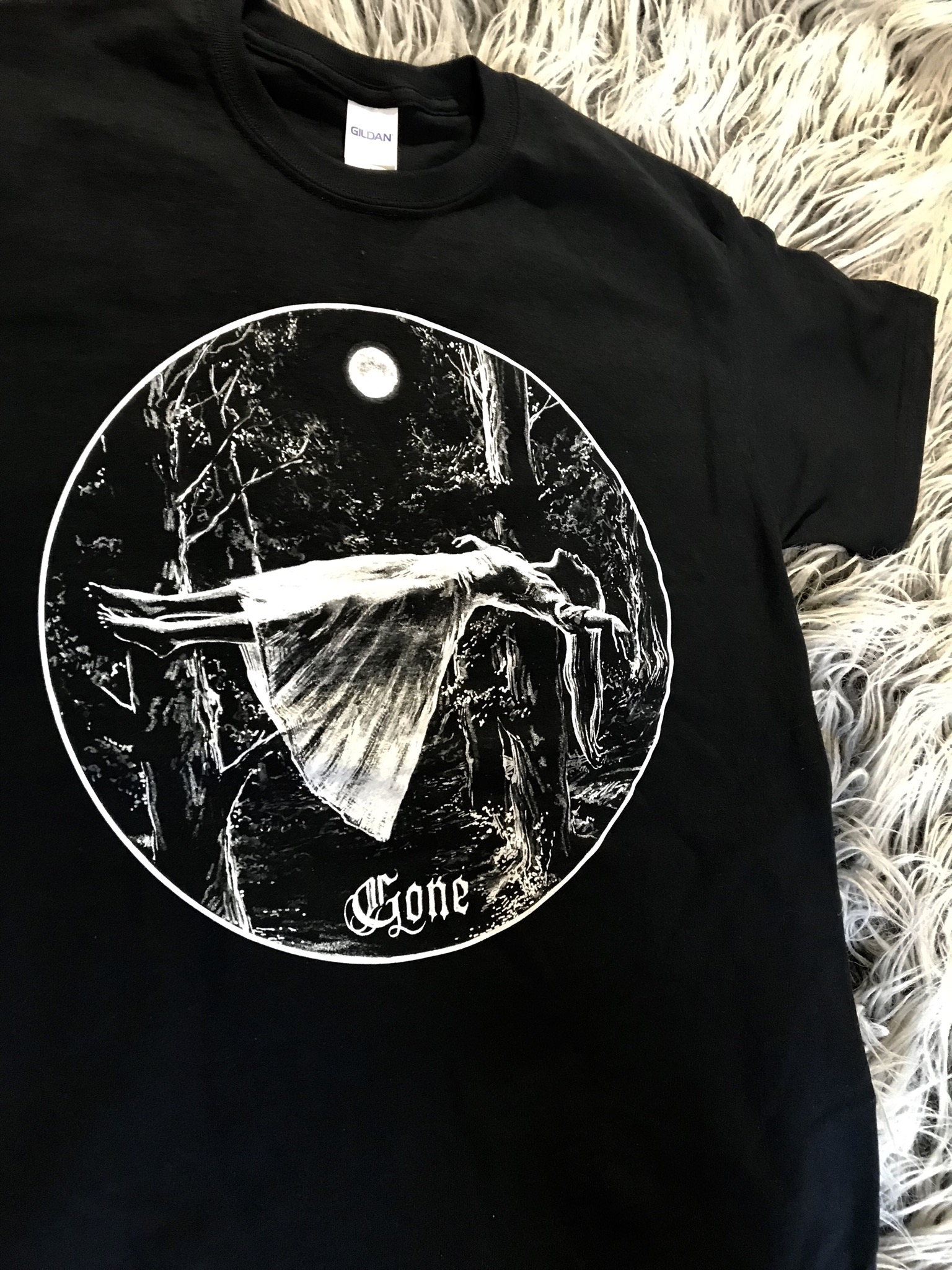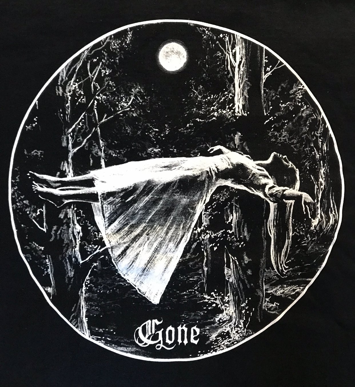 Kerbcrawlerghost's "Gone" image on a black t-shirt
